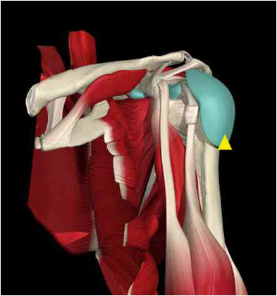The bursa is a thin sack of lubricating tissue that lies over the rotator cuff tendon (arrow). Scarring and inflammation of the bursa can lead to painful shoulder
